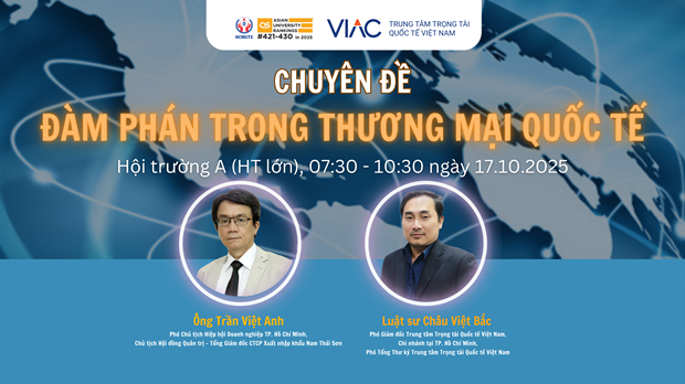 Sáng 17/10/25 sắp tới, Bộ môn Kinh doanh quốc tế sẽ tổ chức hội thảo về "Đàm phán trong thương mại quốc tế" với sự tham gia của 02 diễn giả là anh Trần Việt Anh (Phó chủ tịch Hiệp hội Doanh nghiệp TP. HCM, Chủ tịch HĐQT kiêm TGĐ CTCP XNK Nam Thái Sơn) cho chủ đề "Những vấn đề thường gặp trong quá trình đàm phán TMQT" và anh Châu Việt Bắc (Phó Tổng thư ký trung tâm trọng tài quốc tế Việt Nam - VIAC, kiêm phó GĐ trung tâm VIAC chi nhánh HCM) cho chủ đề "Đàm phán khi đã có tranh chấp và trong quá trình giải quyết tranh chấp" tại Hội trường lớn.